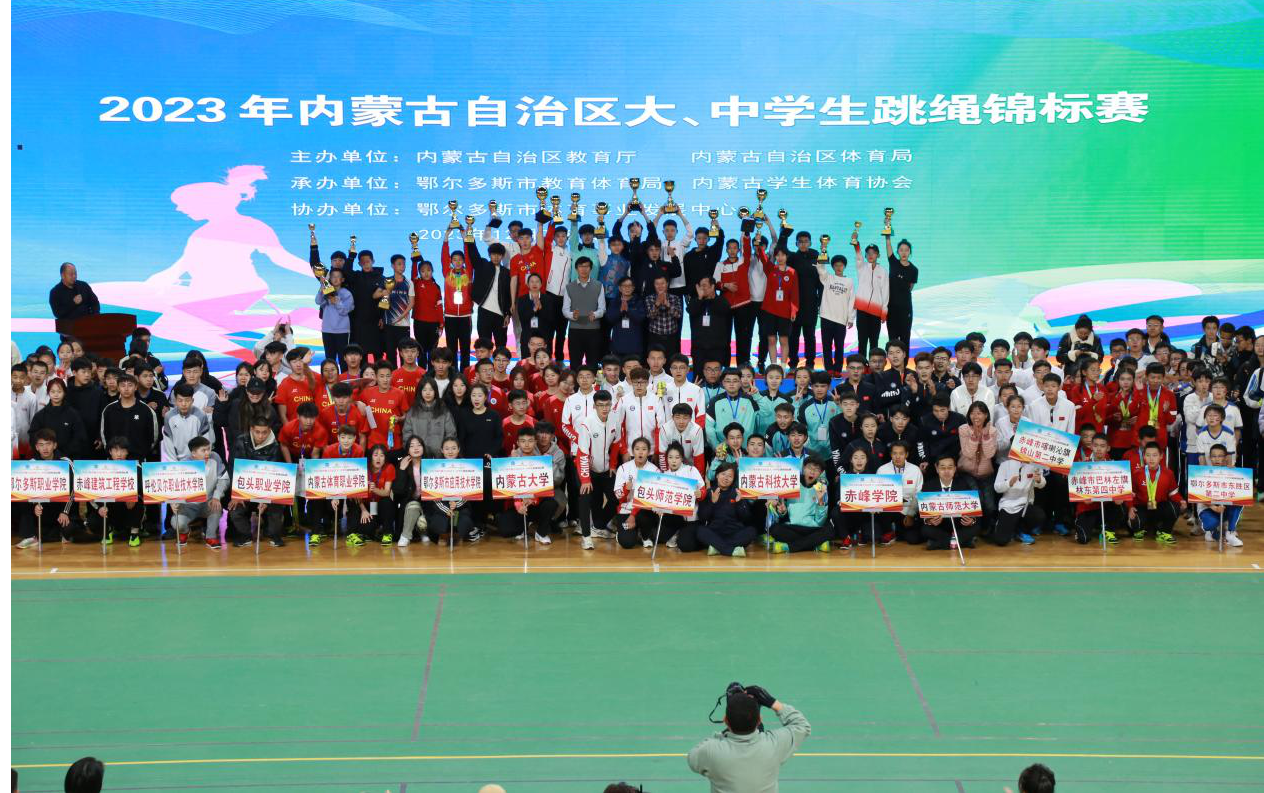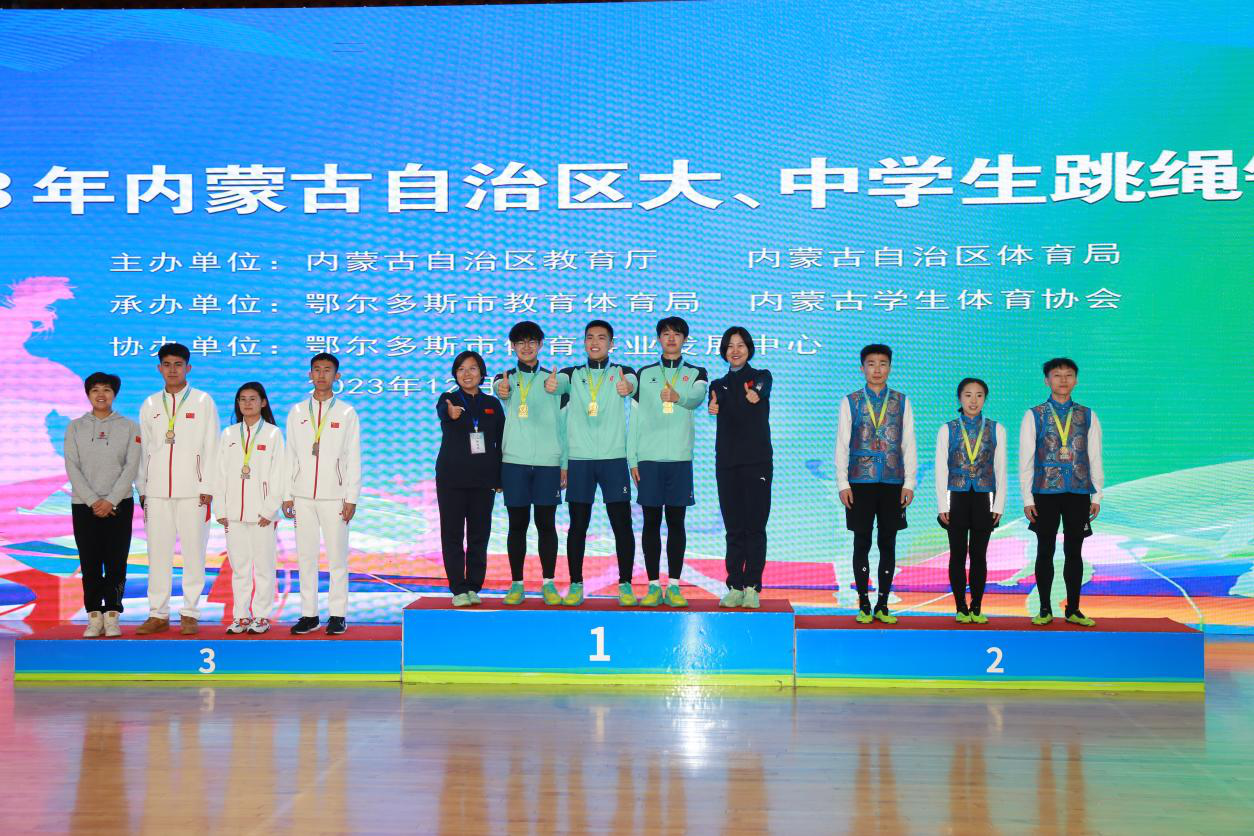 2023年内蒙古自治区大、中学生跳绳锦标赛于12月7日至8日在鄂尔多斯市成功举办。在本次比赛中,我校共派出12名运动员参加个人及团体赛,在17个项目中斩获6项第一名、3项第二名、3项第三名,并且获得2023年内蒙古自治区大学本科组团体总分第三名的优异成绩。值得一提的是,我校包揽了团体规定赛的三个项目冠军,其中《个人绳内蒙古大众规定套路》在赛场上一经亮相,火爆全网,网友纷纷高呼:建议全国推广!
