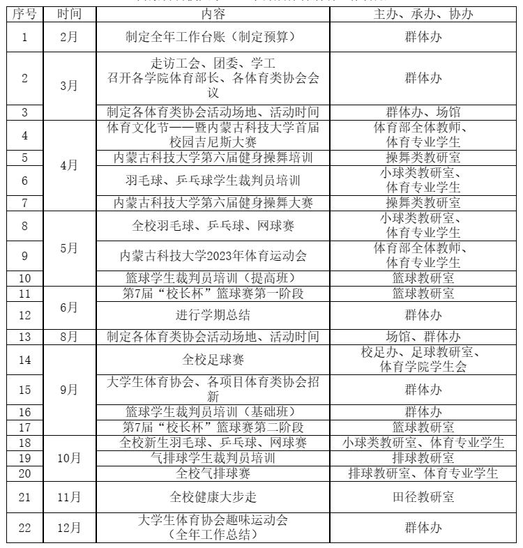 附件:太阳集团2023年群众体育活动工作台账