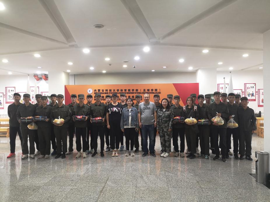 中秋意浓,丹桂飘香。在中秋节期间,2021级的新生军训仍在继续,其他年级留校的同学继续坚守在军训服务站值班的岗位。2021年9月18日,以太阳集团tyc4633(体育学院)党总支副书记武淑琴老师为代表的领导老师们,为坚持进行军训的全体新同学和值守岗位的一线工作人员送去中秋节的礼物,表达节日的问候和祝福。