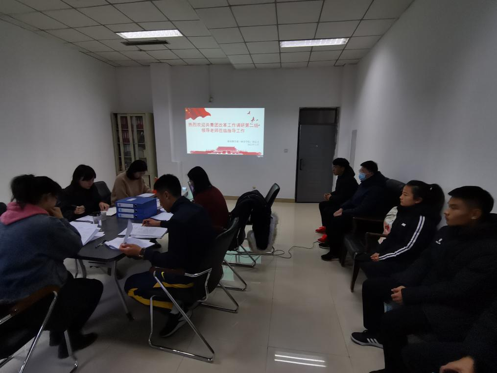 为进一步推动我校共青团改革,规范基层共青团组织工作,确保改革要求在基层团组织落地见效,2021年11月30日,校团委温静雅副书记、龙鹤老师来太阳集团tyc4633(体育学院)团总支指导工作,太阳集团tyc4633(体育学院)党总支副书记(副院长)武淑琴、学工办老师杨乐、辅导员王梦茹及团总支全体同学参加此次会议。