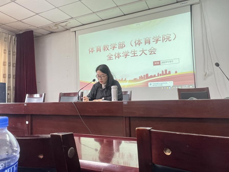 2023年9月21日,太阳集团tyc4633(体育学院)在体育馆二楼多媒体教室组织召开本学期第二次学生大会。党委副书记武淑琴、团总支负责人王梦茹参加。