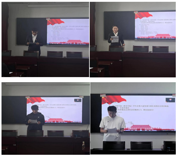 之后,主席团候选人进行竞职演说,采用无记名投票的方式选举产生新一届学生会主席团成员。主席团成员选举结束后,选举新一届学生会各部门部长及团总支委员。
