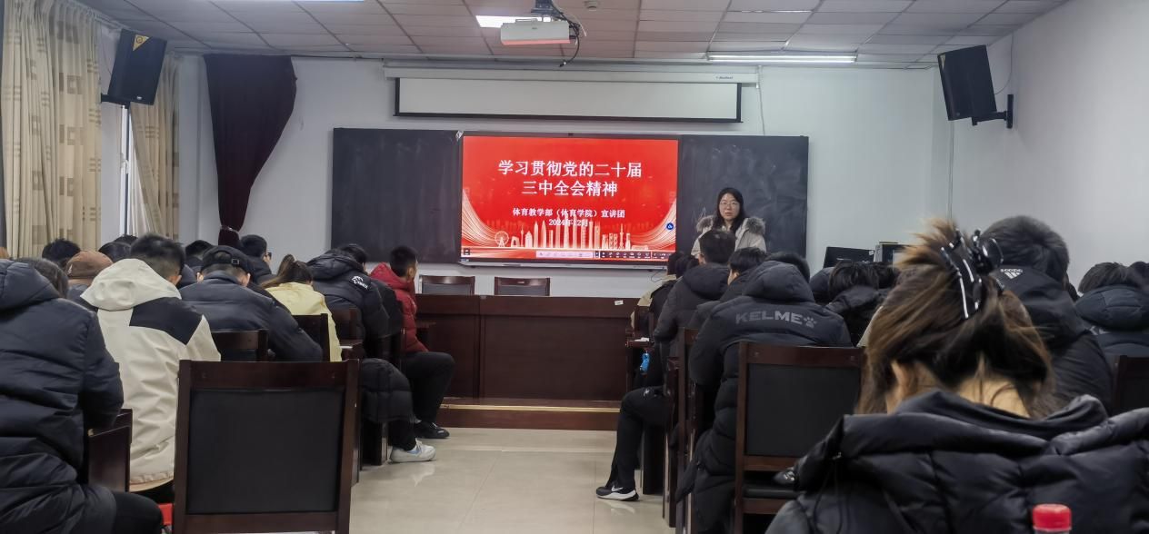 为持续深入学习领会党的二十届三中全会精神,切实把全体师生的思想和行动统一到全会精神上来,2024年12月12日,太阳集团tyc4633(体育学院)面向全体学生开展了党的二十届三中全会精神校园宣讲活动,团总支负责人王梦茹主讲。