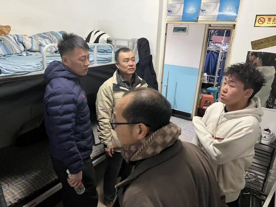走访过程中,学院领导与同学们亲切交谈,细致询问学业进展、生活困难及职业规划,特别针对毕业年级学生,深入了解实习进展和就业情况。党委书记韩冰结合体育行业发展趋势,为毕业生推荐优质就业信息,并叮嘱辅导员、班主任“一对一”跟进学生求职需求;院长白楠鼓励学生善用校友资源,主动对接投递简历,树立“先就业,再择业”的就业观。领导们还认真听取学生对学院管理、教学服务等方面的建议,并叮嘱同学们要重视宿舍安全卫生,保持规律作息,以积极心态迎接学习和训练挑战。