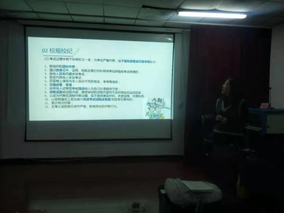 王梦茹老师首先带领同学们学习学校的考纪考规。之后利用抖音视频教育学生严格遵守考试纪律。