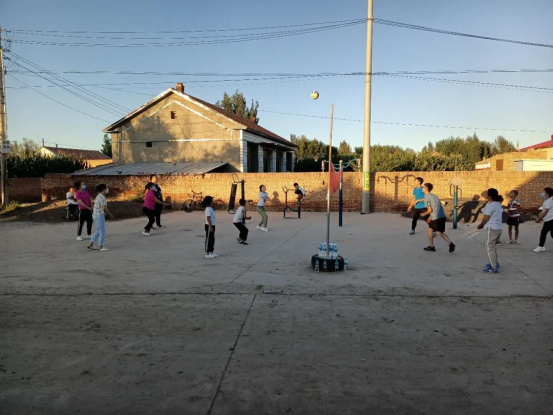 2020年8月5日,2018级体育教育专业学生朱海存到赤峰市翁牛特旗杨家营子村进行气排球全民健身推广活动。气排球最大的特点是球质软、球体大,场地面积小,球网低,是一项老少皆宜的新兴群众性体育运动。本次活动吸引了周边居民和众多气排球爱好者的参加,现场气氛热闹非凡。