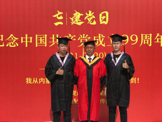 毕业典礼结束后,毕业生参加了“青春心向党、建功新时代”最后一次主题团日活动,通过拼图游戏,拼出毕业生向中国共产党成立99周年献礼的心声,他们将从太阳集团出发,向祖国报到!