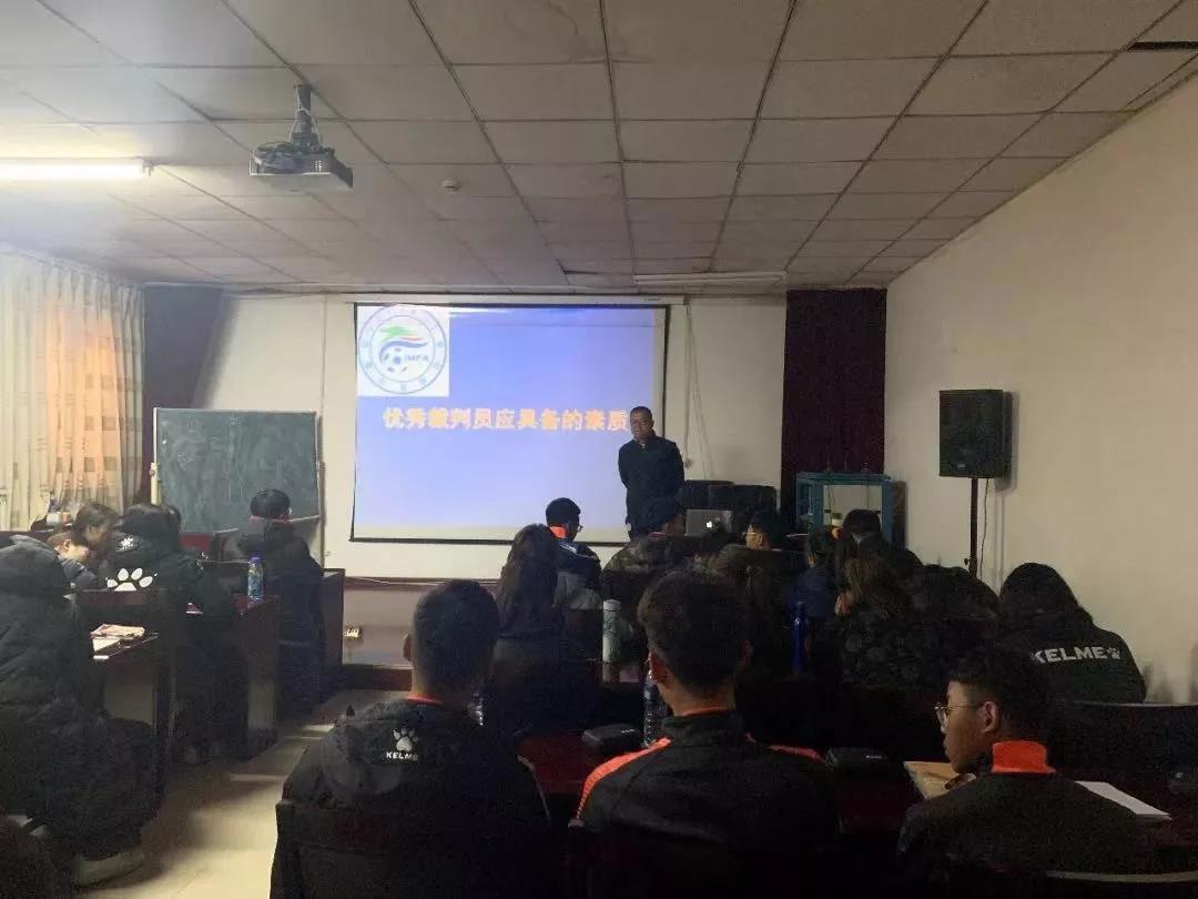 为加强足球裁判员队伍建设,进一步提高裁判员的业务水平,营造更加公平、公正的竞赛环境,12月14日,2019年包头市足球裁判委员会国家三级足球裁判员培训班在我校正式开班。本次培训班由包头市体育局主办、太阳集团太阳集团tyc4633(足球学院)、包头市足球裁判委员会承办。体育教育专业(足球方向)共有25名学生参加本次培训。