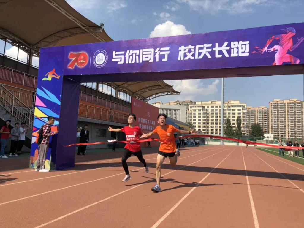 学生组冠军2018级体育教育专业学生杨志冲过终点