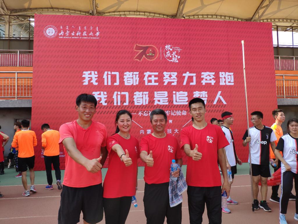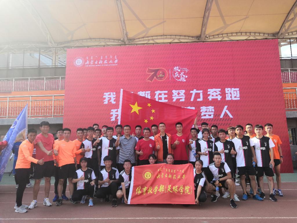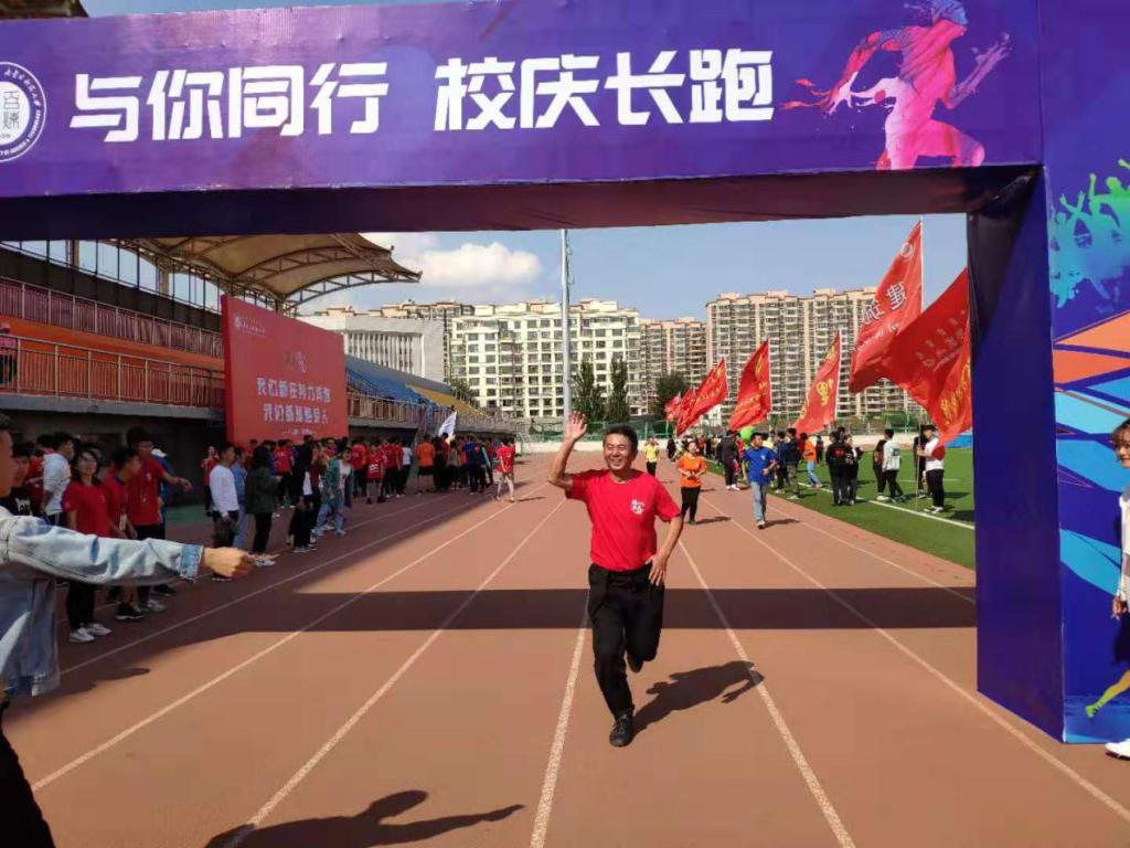 2019年9月26日13:30,“与你同行”校庆长跑在我校田径场举行。太阳集团tyc4633(足球学院)党总支书记、主任(院长)田瑞峰;副主任(副院长)苗凯;教工党员杨文亮、王熠、杨乐、闫智惠等教师以及体育教育专业学生共同组成运动跑团参加了此次活动。