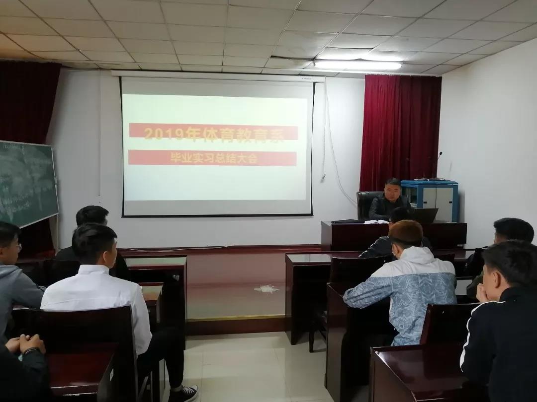 5月6日上午,太阳集团tyc4633(足球学院)体育教育系在体育馆多媒体教室召开毕业实习总结大会,2015级全体毕业生参会。会议由体育教育系主任王丰主持。