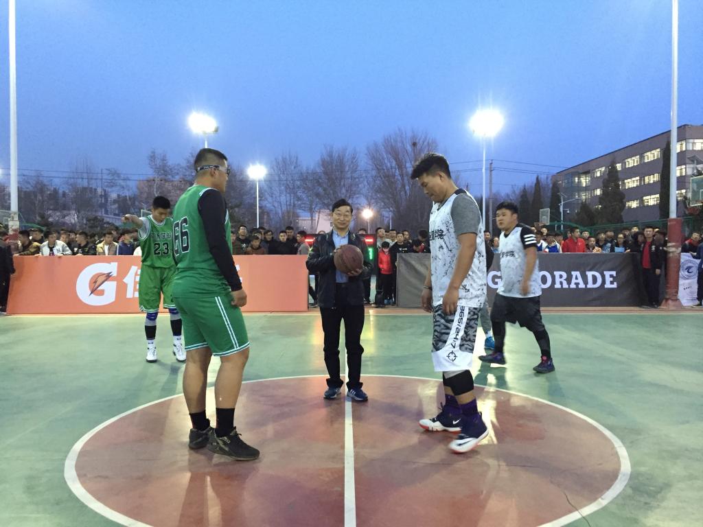 安胜利为首场比赛开球。第一场比赛为经济与管理学院对阵能源与环境学院。断球、上篮、进攻、防守,球员们以精湛的球技、默契的配合赢得现场观众的阵阵掌声。经过激烈角逐,经济与管理学院以48∶36的成绩战胜能源与环境学院,获得本次比赛的首胜。