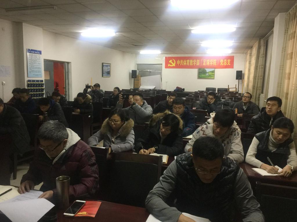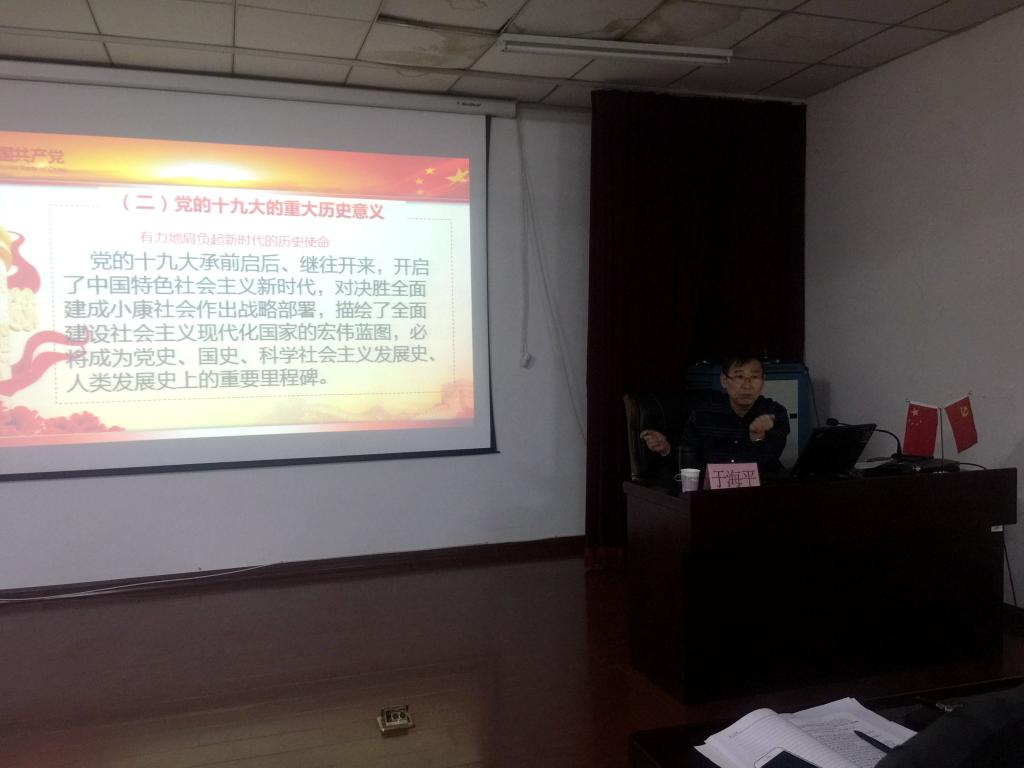 根据学校党委统一安排,太阳集团tyc4633(足球学院)党总支为深刻学习领会“党的十九大”会议精神,1月3日上午,特邀请我校党的十九大精神宣讲团成员、学生工作委员会、思想政治教育专门委员会于海平教授为全体教工党员及入党积极分子进行“党的十九大精神”的宣讲。