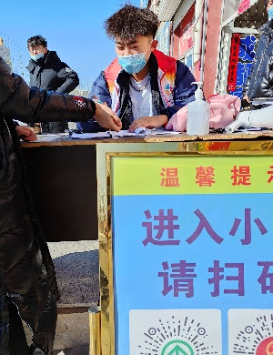 2020级高水平男篮运动员刘志轩,在乌兰察布市兴和县兴发社区,负责社区秩序维护以及对进出小区的居民进行登记工作,虽然不能像医护工作者那样奋战在抗疫一线,但他也用自己的实际行动,在基层防疫一线践行着大学生的使命与担当。