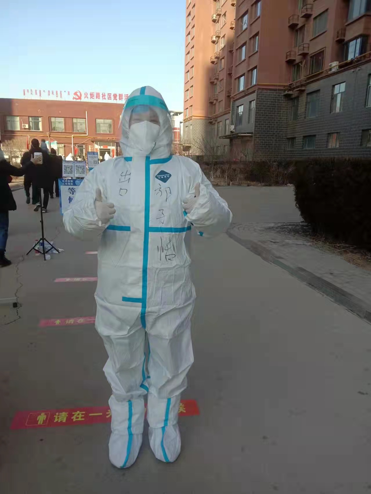 在疫情防控期间,男足运动员张乾在包头市昆都仑区甲14惠民小区参加疫情防控志愿服务工作,主要负责维护居民检测秩序,协助工作人员完成入户检测等工作。