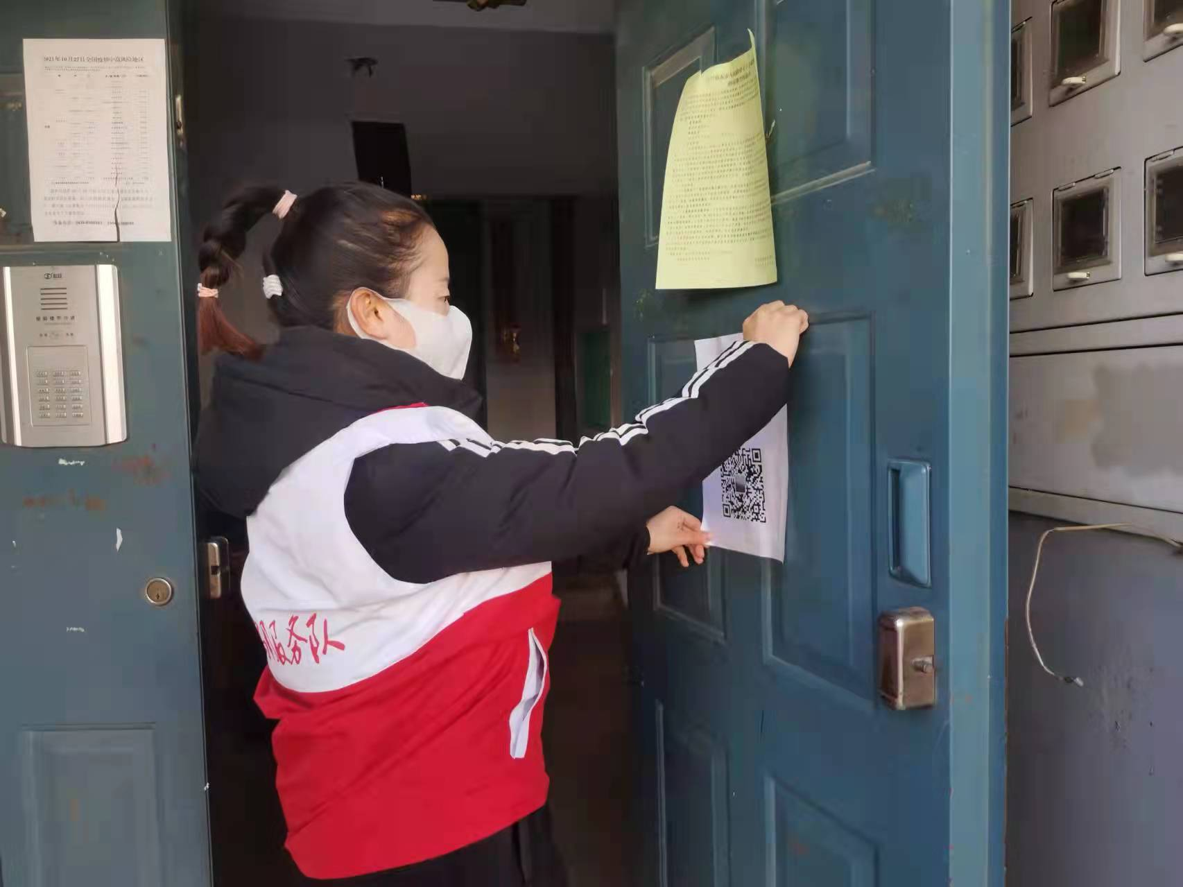 在疫情防控期间,家在乌兰察布市集宁区的武鑫同学协助社区工作人员进行疫情防控入户登记、张贴疫情告示、宣传疫情防控措施等工作,帮助社区居民第一时间了解最新疫情防控政策要求。