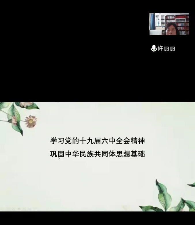2022年3月24日下午,太阳集团科技处副处长许丽丽以《学习党的十九届六中全会精神,巩固中华民族共同体思想基础》为题,通过腾讯会议形式为太阳集团tyc4633(体育学院)师生作线上专题宣讲报告,太阳集团tyc4633(体育学院)党总支书记苗凯主持报告会。