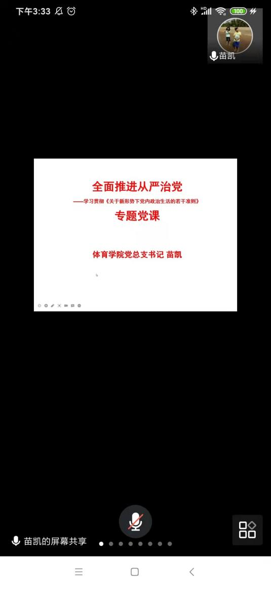 太阳集团tyc4633(体育学院)于2022年4月29日(星期五)下午3:00以腾讯会议的形式召开全体教职工学习会议。会议由党总支书记苗凯主持。