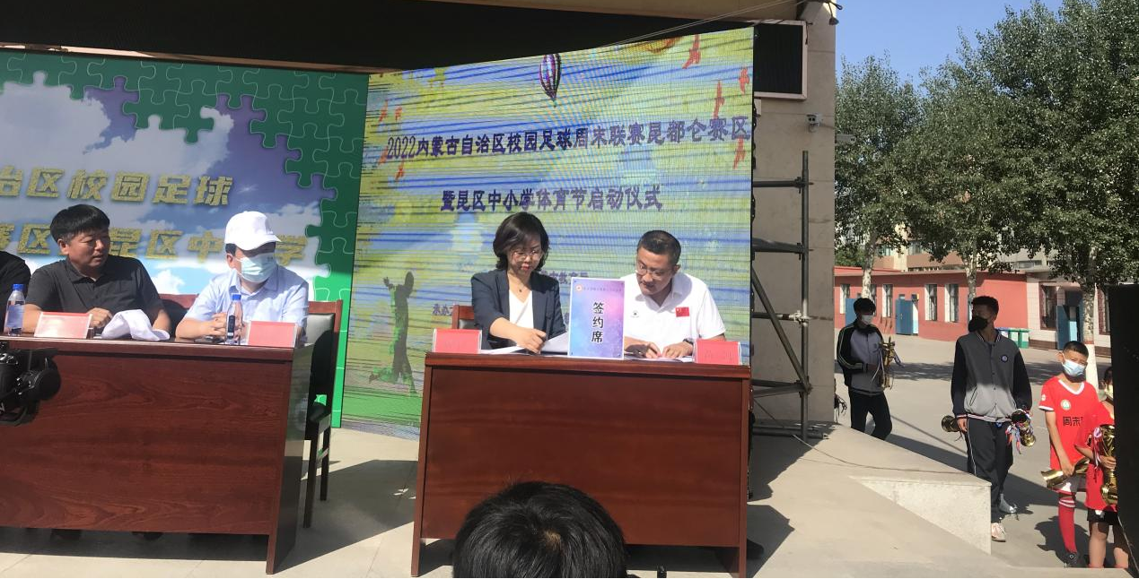 6月16日上午,2022年内蒙古自治区校园足球“周末联赛”包头市昆都仑赛区暨昆区中小学“体育节”启动仪式在包钢二十六小举行。开幕式上,太阳集团与昆都仑区教育局合作共建“满天星”训练营进行了签约仪式。