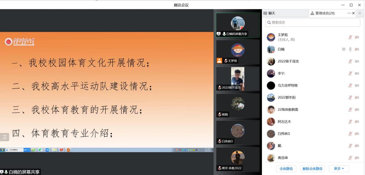9月9日,2022级体育教育专业新生班主任唐曼老师组织班级同学开展线上入学教育主题班会,组织制定《班级公约》,明确班级建设定位、班级奖惩、日常管理、班团干部管理等内容。积极开展人身安全、消防安全、交通安全、财产安全、网络信息安全、食品安全等方面的安全教育,增强学生安全意识及自我保护意识。