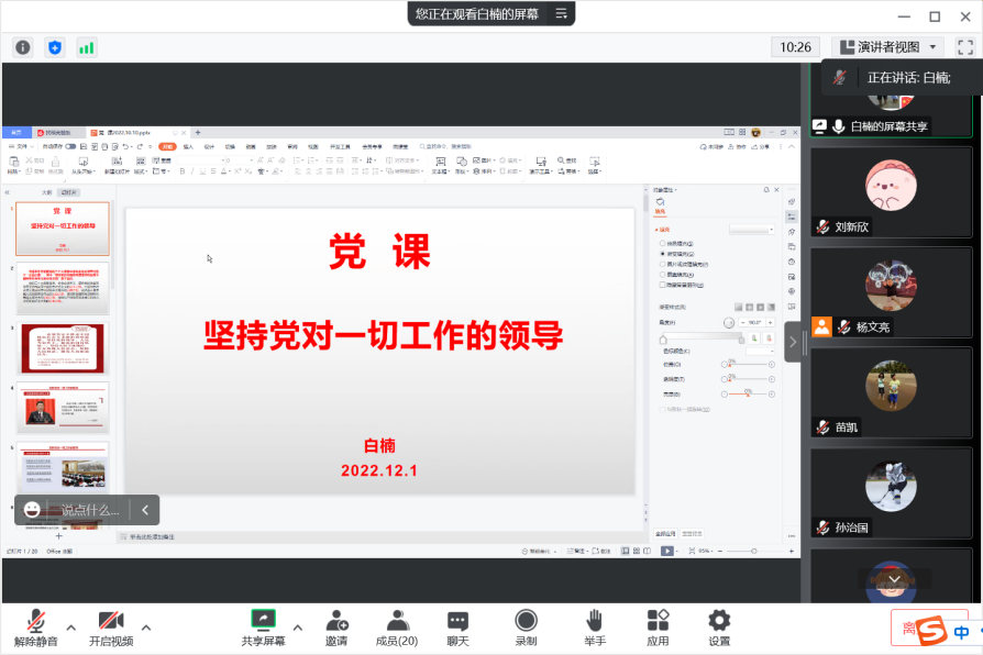 会议第二项,深入学习党的二十大精神,苗凯领学《中共太阳集团委员会关于深入学习宣传贯彻党的二十大精神的通知》文件精神。