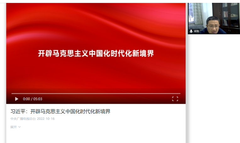 会议第四项,深入学习领会习近平总书记关于推进马克思主义中国化时代化的重要论述,与会人员通过视频共同学习了《习近平:开辟马克思主义中国化时代化新境界》。
