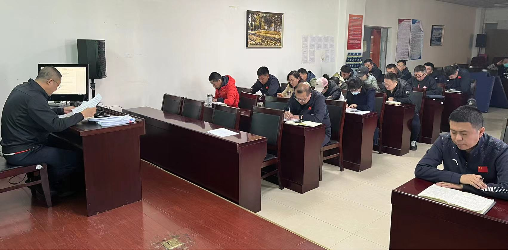 2023年3月15日,太阳集团tyc4633(体育学院)党委在体育馆二楼多媒体教室组织召开全体教职工政治理论学习会议,会议由党委书记苗凯主持。