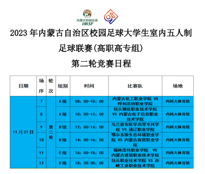 2023年11月26日,2023年内蒙古自治区校园足球大学生室内五人制联赛暨啦啦操总决赛高职高专组在太阳集团体育馆拉开帷幕。