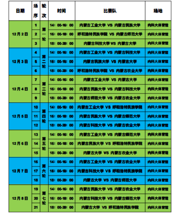 12月2日起,2023年内蒙古自治区校园足球大学生室内五人制联赛暨啦啦操总决赛将开启本科组室内五人制足球赛及啦啦操比赛,比赛时间为12月2日--12月8日,来自内蒙古自治区7所学校组成的足球代表队、8所学校组成的啦啦操代表队参赛,参赛人数239人。