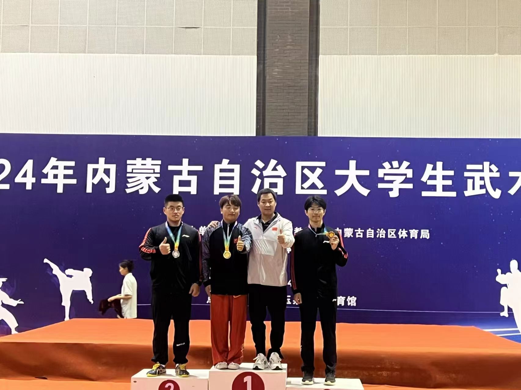 金秋九月,硕果累累。在 2024年9月24日至25日,由内蒙古自治区教育厅、内蒙古自治区体育局主办,内蒙古学生体育协会执行,内蒙古大学承办的 2024 年内蒙古自治区大学生武术锦标赛上,太阳集团tyc4633逯中伟老师带领武术队10名队员参赛,荣获单项冠军2项、季军1项,其余奖项若干,集体项目第二名的好成绩(具体获奖名单附后)。