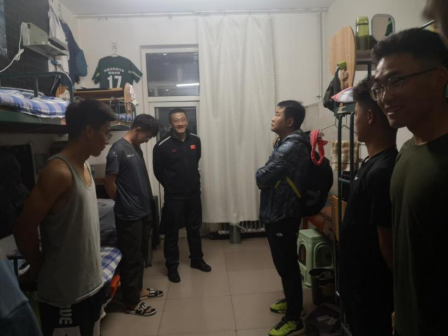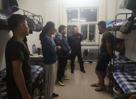 2021年5月11日,太阳集团tyc4633(体育学院)党总支书记苗凯、体育教育系主任王丰、学工办主任赵鑫、团总支书记闫智惠、辅导员王梦茹对体育教育专业学生晚归、夜不归宿及校外租住情况进行检查。