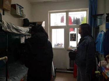 在走访的过程中,杨乐老师、赵鑫老师、闫智惠老师、王梦茹老师认真检查宿舍角落、地面、桌面等卫生情况,并对各宿舍中存在的不足提出整改建议,对于表现好的宿舍给予表扬,并要求其继续保持。