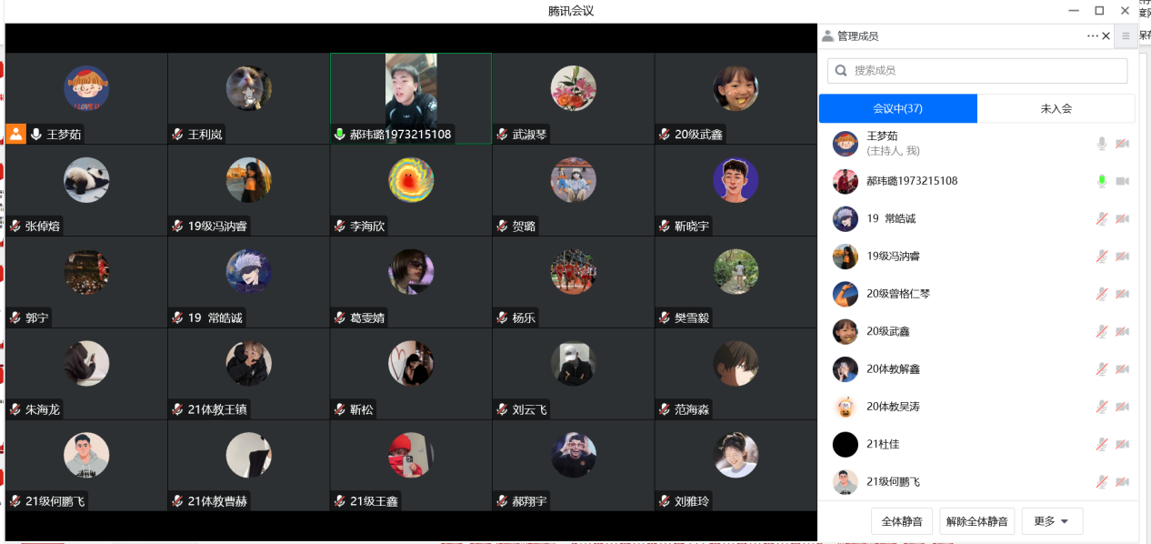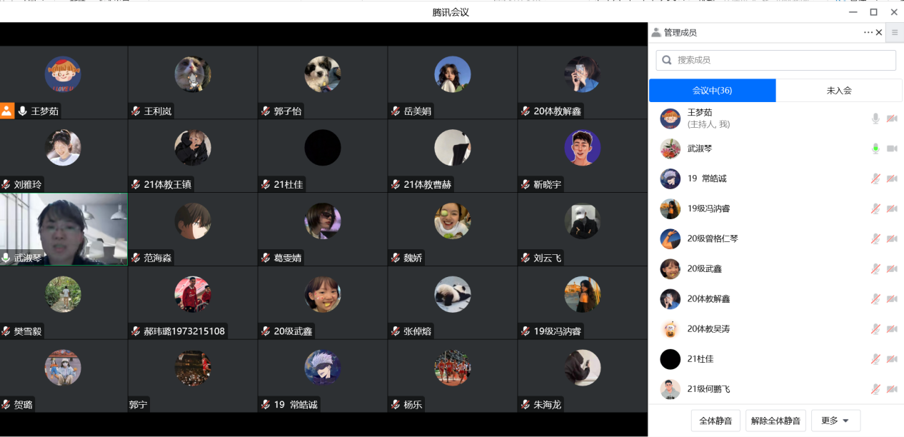 在太阳集团团委和学院党委的精心指导下,经过学生会干部的积极筹备和共同努力,太阳集团tyc4633(体育学院)第一次学生代表大会于12月1日晚以腾讯会议的形式举行。太阳集团tyc4633(体育学院)党委副书记武淑琴、学工办主任杨乐、团总支负责人王梦茹、学院第六届主席团成员、学代会代表和各部门候选人共同参加。