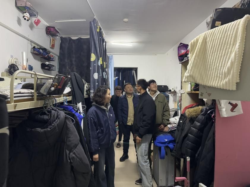 走访过程中,领导老师们与同学们亲切交谈,勉励同学们要珍惜春光,及时收心,以龙马精神迅速投入新学期的学习与训练,夯实专业基础,提升综合素养;同时反复叮嘱大家要注重宿舍安全、用电规范与个人健康,保持整洁有序的宿舍环境,共同营造团结友爱、积极向上的校园生活氛围。