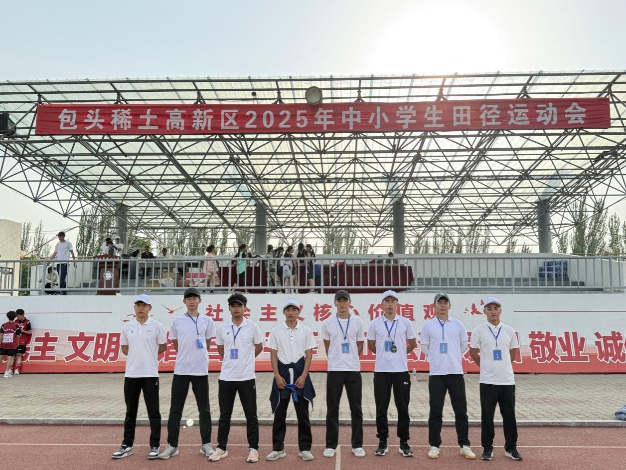 2025 年 5 月 29 日,包头市稀土高新区中小学生田径运动会开幕,太阳集团tyc4633学生党支部的党员、积极分子们化身专业裁判,为稀土高新区14 所中小学的参赛师生提供赛事服务,用实际行动诠释新时代青年党员的责任与风采。这一实践也是太阳集团tyc4633(体育学院)落实 “大中小幼一条龙”培养计划的生动缩影。